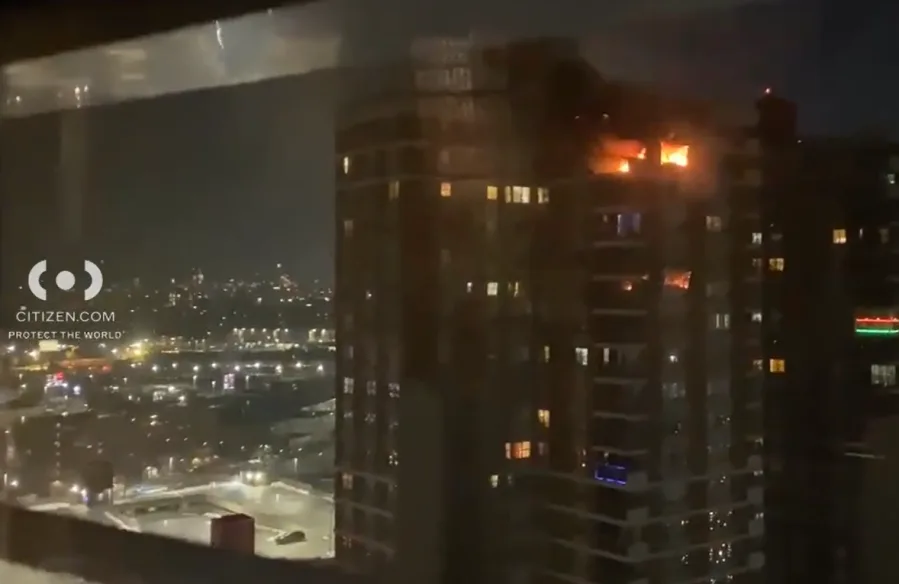 El incendio se reportó en el piso 25 de un edificio residencial en 100 Asch Loop alrededor de las 4:10 am.