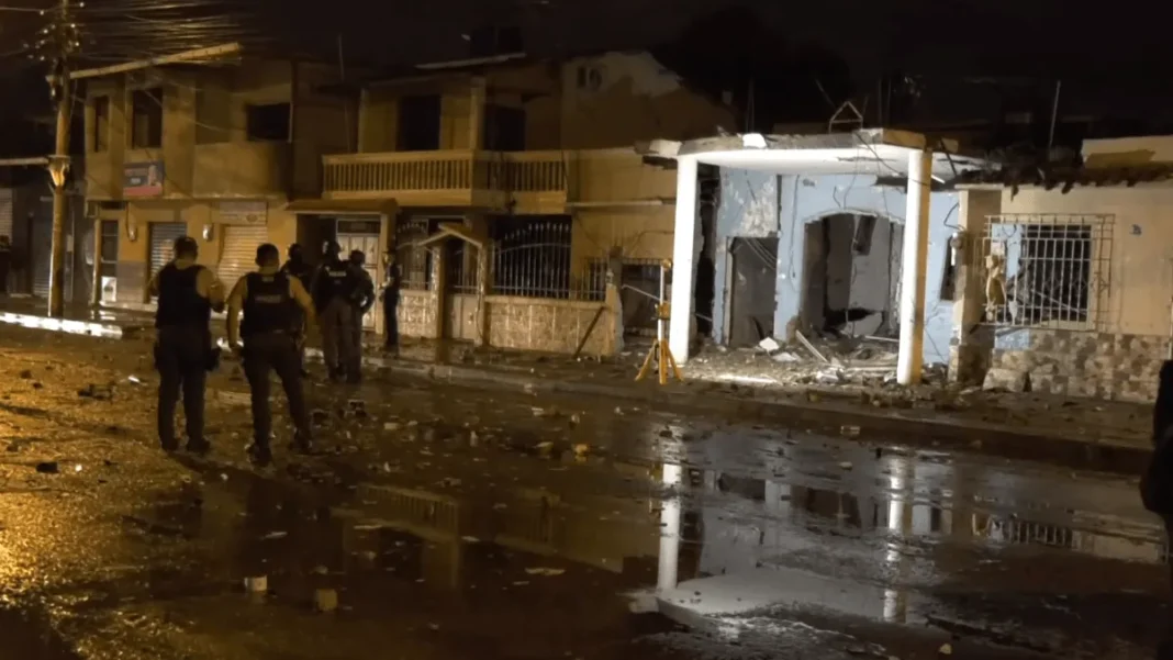 QUITO.-Eran aproximadamente las 22:50 del martes 10 de marzocuando una fuerte explosión interrumpió la música y sembró el caos en una discoteca de la Zona Rosa en Machala. La detonación derribó paredes y ventanas, mientras la potente onda expansiva expulsó hacia la calle las puertas metálicas y derrumbó parte de la escalera de acceso al segundo piso del establecimiento.