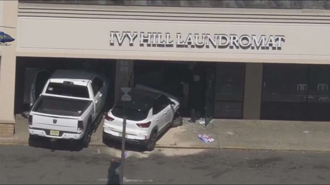 NUEVA JERSEY — Un coche y una camioneta se estrellaron contra una lavandería en Newark, matando a una mujer que estaba lavando su ropa dentro, según testigos.