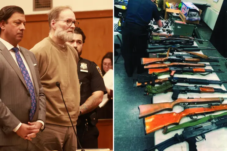 La oficina de la fiscal de distrito de Queen, Melinda Katz, compartió fotos del arsenal de armas recuperado que Foehner dice haber recolectado con el tiempo, describiéndose a sí mismo como un entusiasta de las armas de toda la vida y un preparador para el fin del mundo.Fiscal de Distrito de Queens