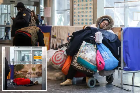 Decenas de vagabundos que intentan evitar el frío y las condiciones inestables de los refugios de la ciudad se están quedando dormidos en la concurrida terminal, convirtiendo este centro vital en una pesadilla para los viajeros.