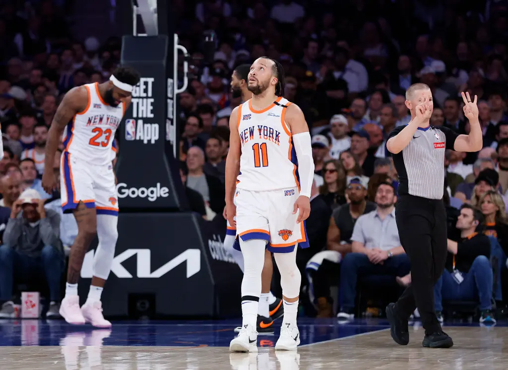NUEVA YORK.-La imagen duradera de la noche del martes fue la de Jalen Brunson y Josh Hart, los dos jugadores clave de los Knicks en sus recientes participaciones en la postemporada, esperando en la mesa de anotadores un silbato que nunca llegó mientras una atónita multitud del Garden observaba en silencio atónito.