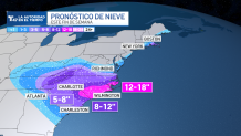 Es probable que caigan un pie o más de nieve en el este de Carolina del Norte y en algunas zonas de Carolina del Sur. Las fuertes nevadas también se extenderán hacia el oeste, hasta las montañas Apalaches de Tennessee y Virginia.