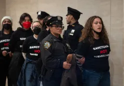 Manifestantes arrestados por ocupar el edificio Palantir tras protestar con Mamdani contra el ICE