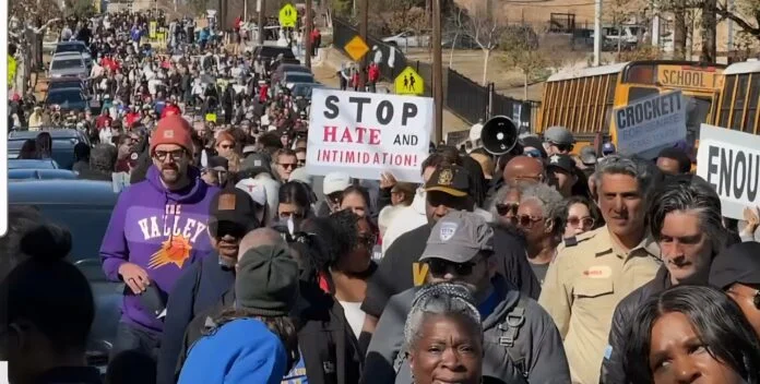 Mientras en Texas cientos de personas marcharon con pancartas con mensajes de paz y esperanza.