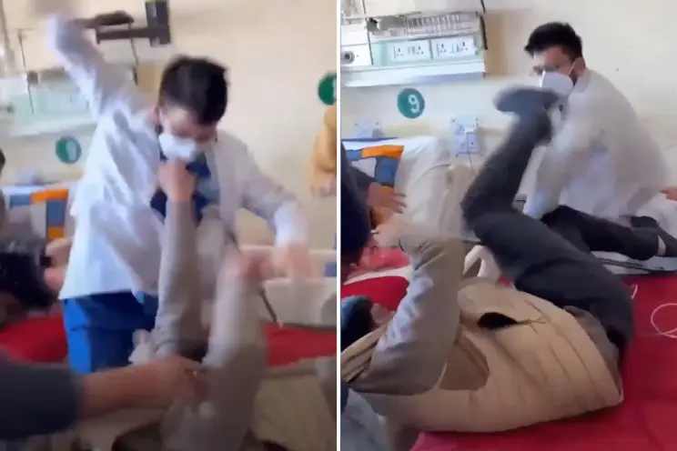 Las imágenes grabadas por un asistente muestran al médico golpeando repetidamente al paciente mientras intenta protegerse.