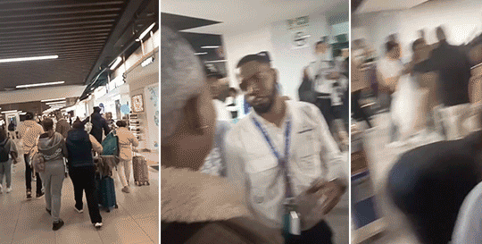 Asimismo, denunciaron que agentes de seguridad se mostraban incómodos ante la situación, mientras los viajeros exigían respuestas y el respeto a sus derechos como consumidores.