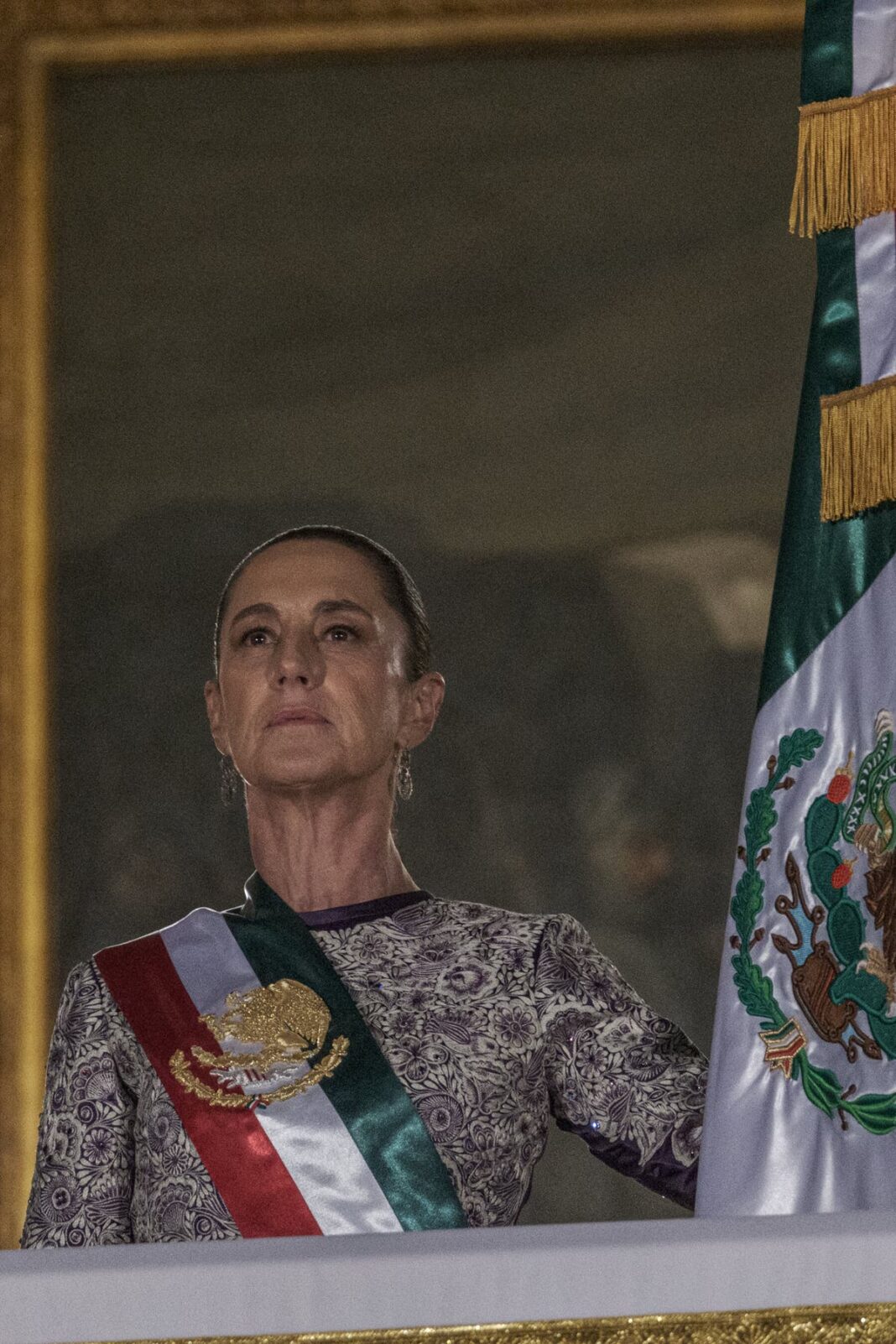 De camino al balcón, en el Palacio Nacional, Sheinbaum y su marido, Jesús María Tarriba, se detuvieron brevemente ante un retrato de Leona Vicario, conocida como la madre de la patria mexicana. El gobierno dijo que era la primera vez que se incluía un cuadro de una mujer en la galería principal del palacio.