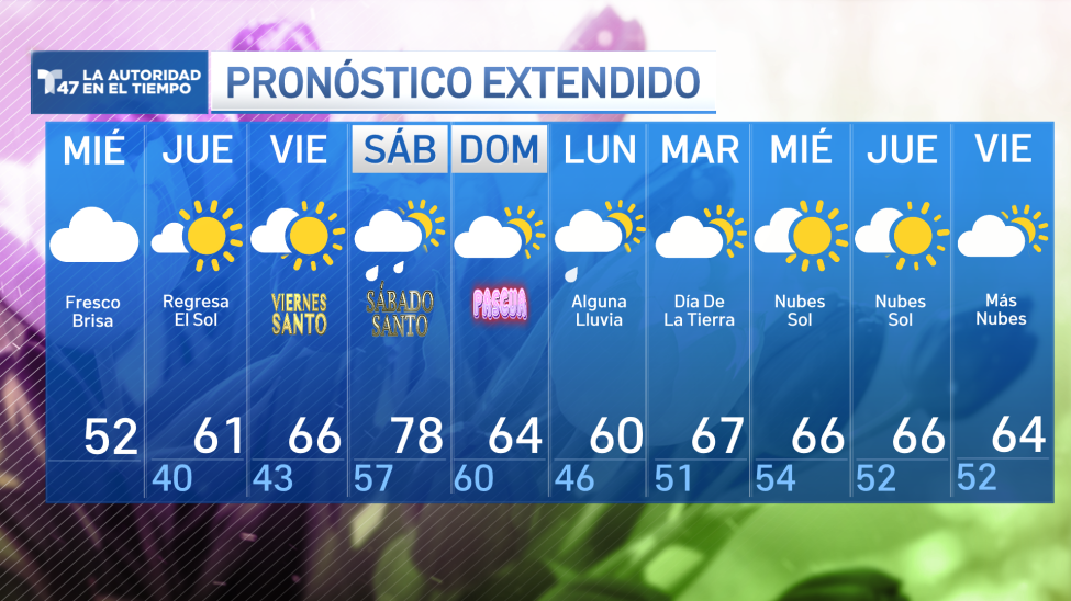 Este jueves ya estaremos de nuevo en los 60 grados. Para el sábado, las máximas en la ciudad alcanzarán los 70 grados, mientras que las áreas más al interior superarán los 80.