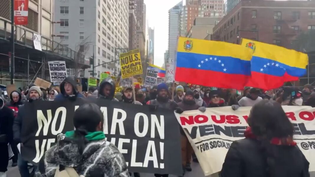 Las protestas en Nueva York contra la operación estadounidense en suelo venezolano comenzaron el sábado, coincidiendo con la llegada de Maduro y su esposa a la ciudad, tras un prolongado traslado desde Caracas hasta la prisión de Brooklyn.
