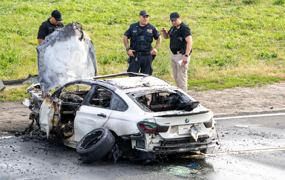 Luego, el BMW chocó contra un Honda CRV 2016 y un Hyundai rojo 2022 y se incendió, dijeron las autoridades.