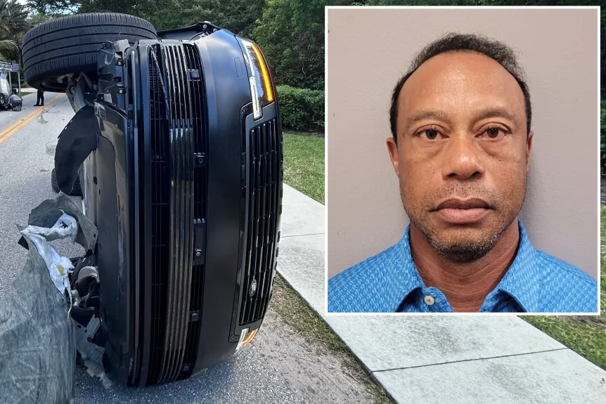 La SUV de Woods dio un volantazo para esquivar la camioneta, pero impactó la parte trasera del remolque. La Land Rover volcó sobre su costado y se deslizó por la carretera. Woods salió del vehículo a través de la ventanilla del pasajero, indicó Budensiek.