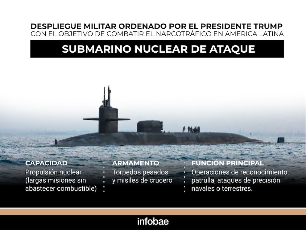 Estados Unidos envío a un submarino nuclear para patrullar las aguas internacionales frente a Venezuela.