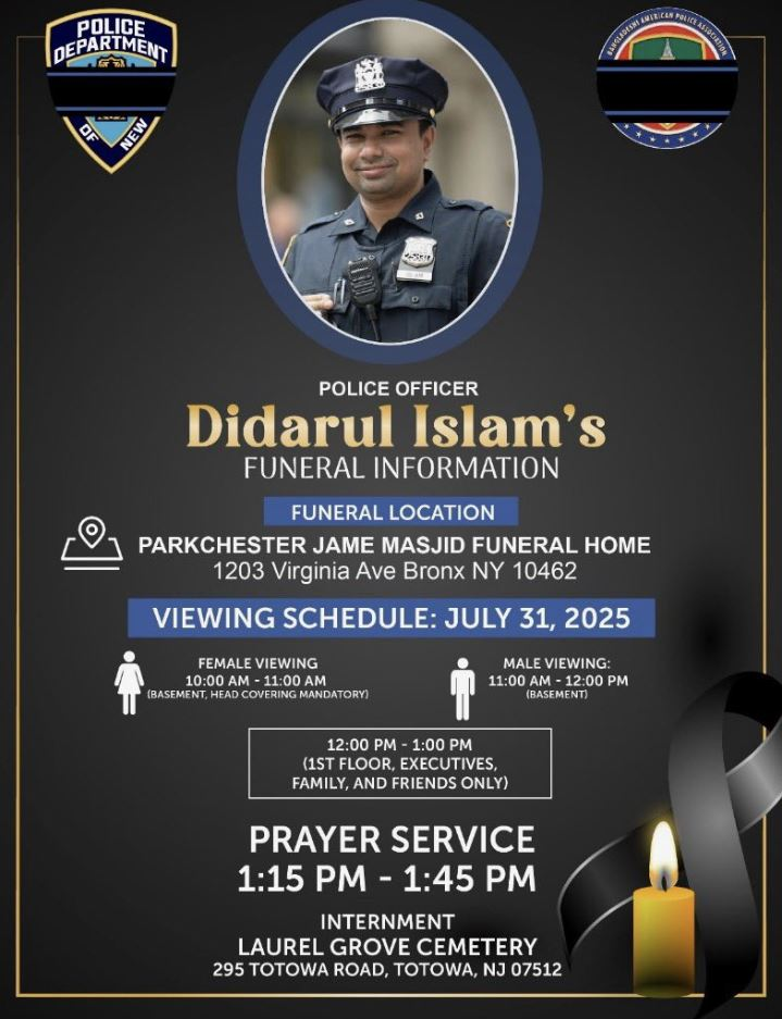 Islam, inmigrante de Bangladesh, ascendió en la fuerza policial más grande del país, sirviendo como agente de seguridad escolar antes de convertirse en oficial de patrulla hace menos de cuatro años.